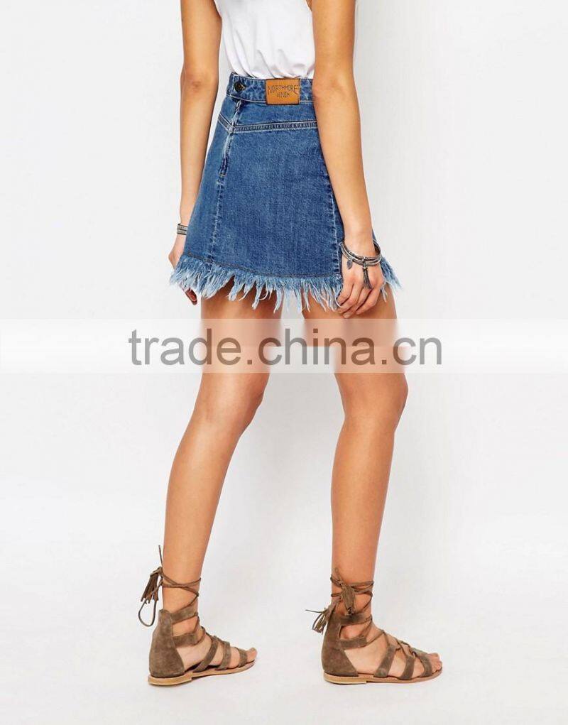 Latest Fahsion Blouse and Skirt Denim Mini Sexy Short Skirt With Unravelled Hem SK023