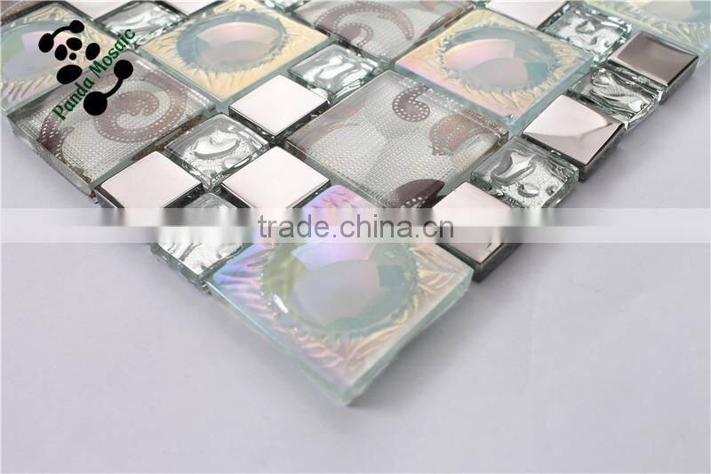 MB SMP23 Living Room Decor Stainless Steel Mix Glass Mosaic Tile Iridescent Mosaic Wall Tile