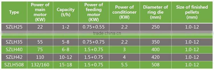 There three pictures is our SZLH-420 ,SZLH 320 and SZLH250 Pellet Machine, the capacity is 10-12T/H,3-5t/h and 1-2T/H.