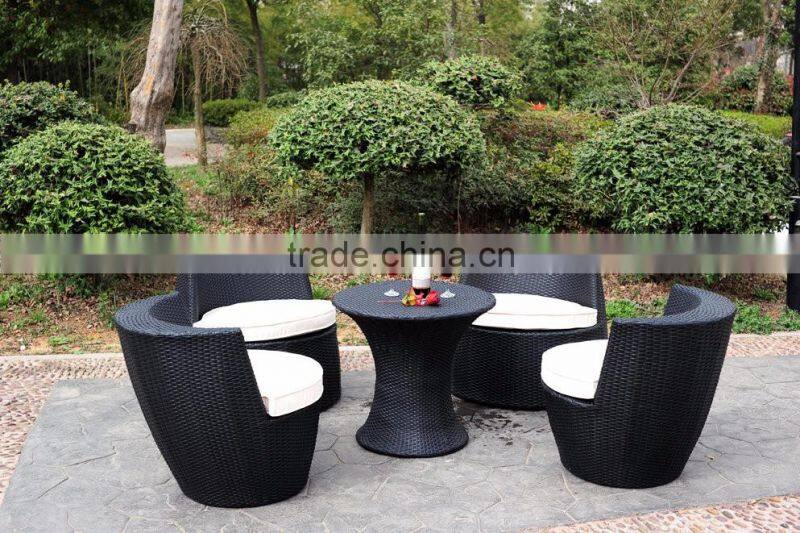 Wicker Sofa Set Black Bottle Shape Rattan Sofa and Ottoman
