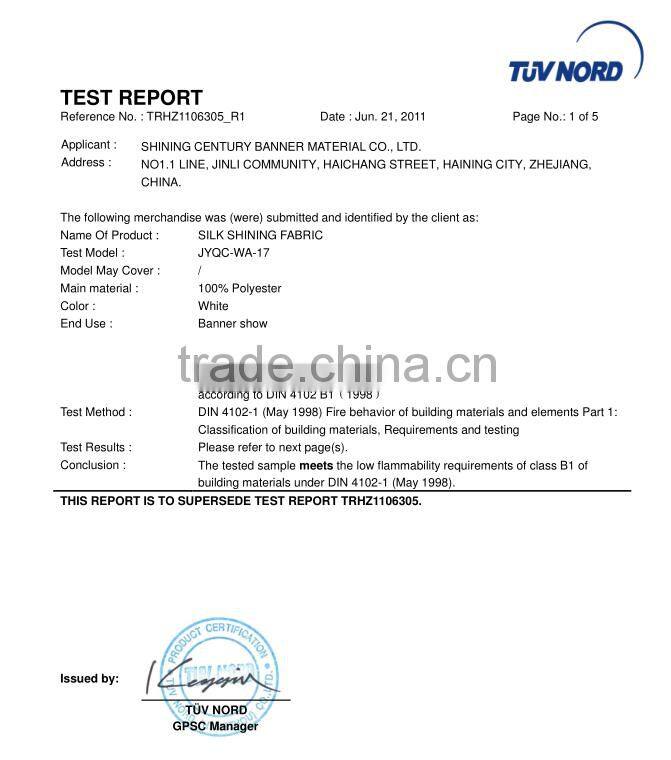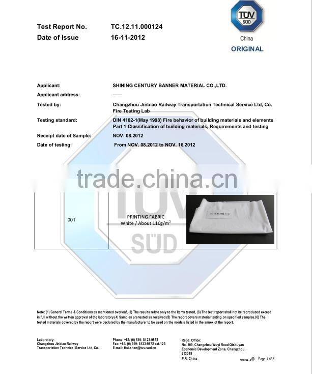 We,Haining Shining Century Banner Material Co., Ltd. Is a professional supplier of digital direct printing fabric. Our products range from flag fabric, display fabric, backlit fabric, stretch fabric and blockout fabric.We have been R&D and producing direct printing fabric for 6 years. Since 2009, We have had agents in over 6 countries around the world.Hope we become your trustworthy supplier in China.
