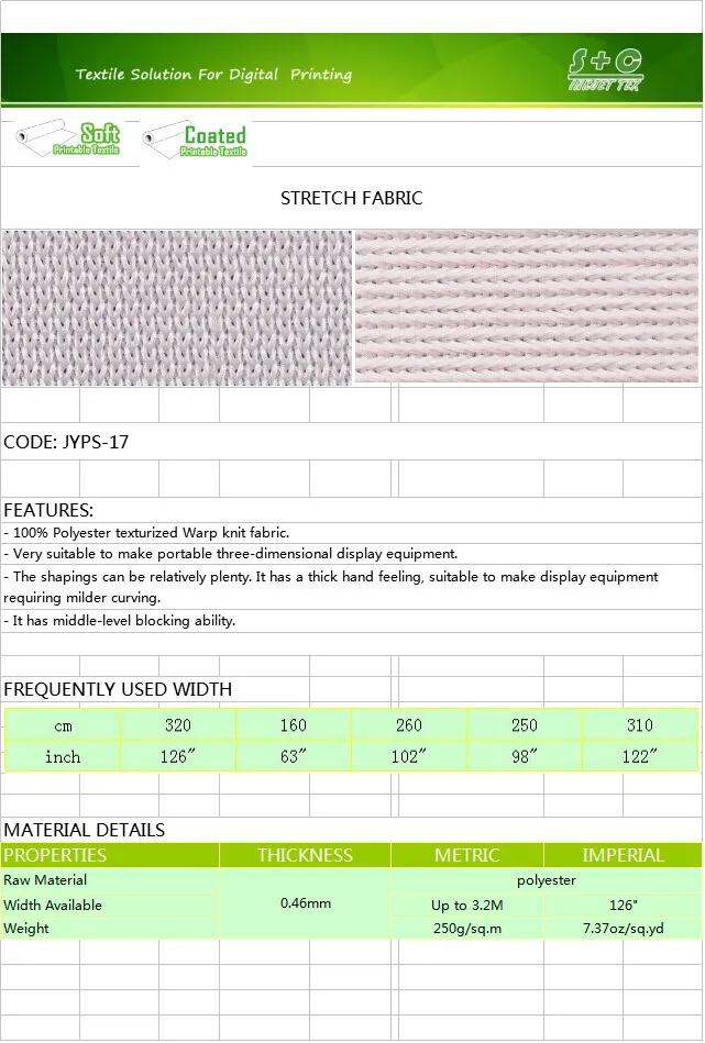 JYBL-101 the Latest Dye Sublimation Backlit White Fabric