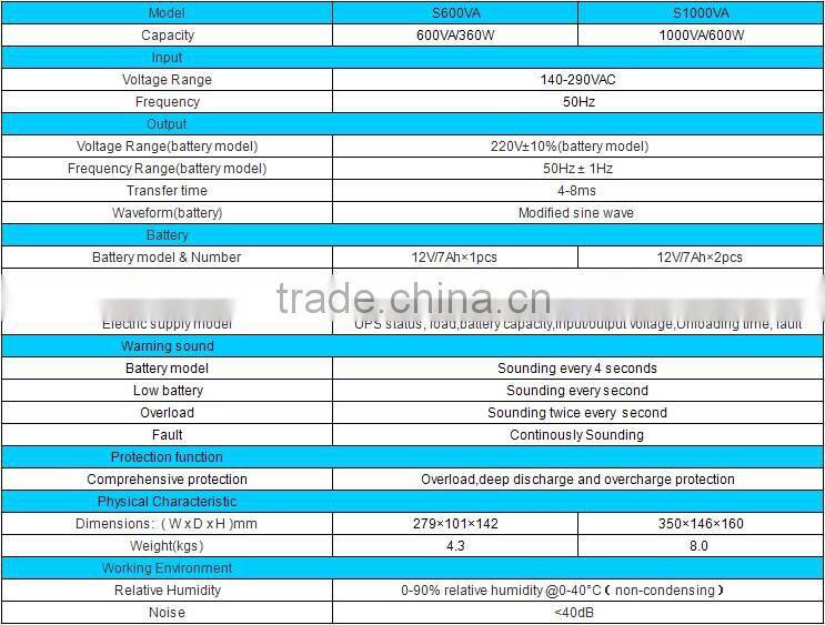 Offline 1000VA UPS with built-in batteries batteries modified sine wave with low noise Shangyu