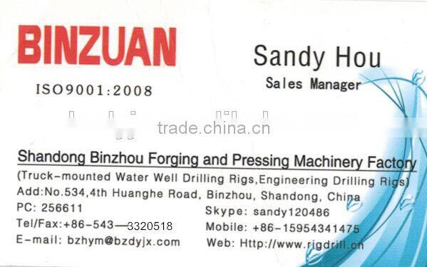 Dear friend, if you are interested in BINZUNA brand water well drilling rig, please don't be hesitate to contact us, we will supply our best service and choose the best suitable water well drilling rig according to your demands, so we are looking forwards to your reply.