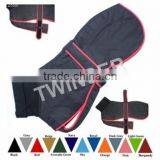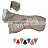 Greyhound Whippet WLong Hood Geryhound and Whippet jacket. Made of 600 Denier waterproof Polyester outer shell. New style belly band with adjustable Plastic Buckle closer. 200 GSM Poly Filling. Soft fleece lining. Cat fur inside the hood area. The hood of this jacket could also be turn back or use fully. A velcro closer strap is attached at hood to fit the hood at your dog head. All sizes available for Greyhound and Whippet start from 19" to 34".