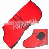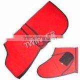 Greyhound and Whippet Rain Coat. Made of 320 Denier 100% waterproof Polyester material. Extra deep chest area which is very suitable for Greyhound, Whippet and Saluki. Angled belly band with 2 wide Velcro closer wide and long hood for maximum protection against the rain and cover maximum Area of the neck come with waterproof zip to easily attach and remove the lead with Dee ring of collar. Velcro closer hood with turn back collar facility.