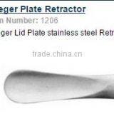 Knapp eye retractor product number “1208” is a lacrimal sac retractor which contains sleek, straight, finished and extremely sharp 4 prong fork shaped blunt tip of approx 4mm, 0.15 inches x 8mm, 0.314 inches wide along with 6mm, 0.23 inches long, straight and finished thin shaft. It also contain smooth, straight, flat and polished serrated handle with linear grip design for easy handling. Its overall length is about 135mm, 5.3 inches.