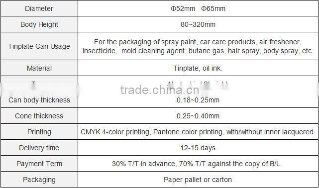 3. To meet customers’ different demand, we produce several types of aerosol cans, including necked-in cans and straight cans, which are used in all sorts of fields for the packaging of car care products, insecticide products, spray paint, air freshener, body spray, hair care products, spray string/snow, etc.