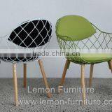 High Quality Metal Wire Latest Painted Portable Leisure Chair With Wood Foot