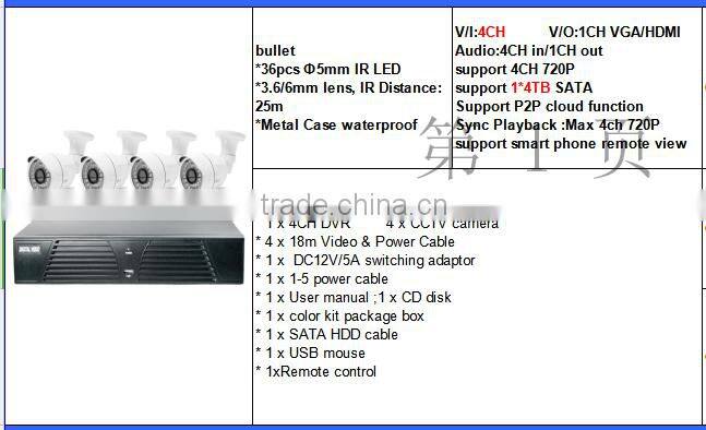 4 Channer dvr and security camera system ,1.0MP Camera bring new HD image for your home security