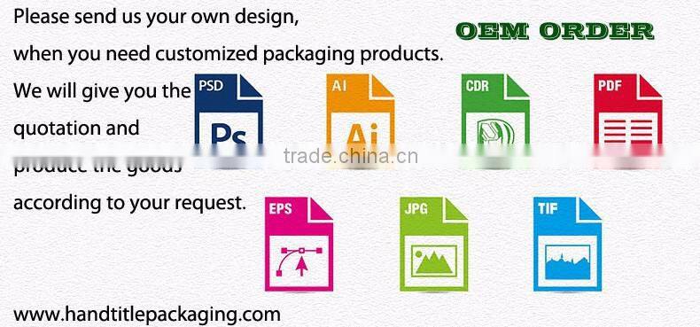 Shenzhen Handtitle Packaging specializes in creating custom boxes and custom packaging. Our team will work with you to create the most unique, eye catching custom box to draw customers towards your product. Whether it Metal Stay, custom graphics, inserts, specialty papers, foil stamping, or many more services about customized artware, we will try our best to help you.