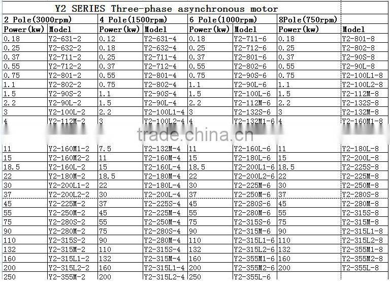 1. Y2 series three phase electric motors are newly designed by our company for European and American market on the basis of Y2 series.