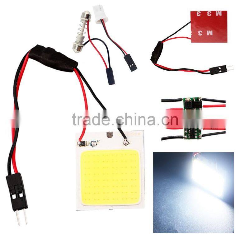 Constant Nonpolarity COB 48SMD LED Panel Roof Light Lamp + T10 Festoon Adapter Dome Light Bulb