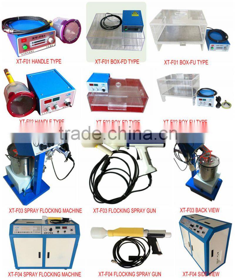 XT-F03 Fiber flocking gun is one kind of fiber spray gun which is suitable for both XT-F03 and XT-F04 generator ,which is widely used for spraying the fiber onto the workpiece ; Especially applying to automotive spare parts' flocking process.