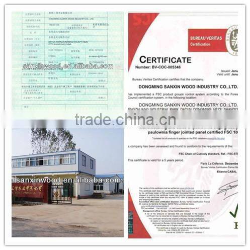 Dongming Sanxin Wood Industry Co., Ltd. was established in 2006, and has a subordinate company named Dongming Jiuxin Trading Co., Ltd. We are now one of the largest enterprises in the field. We have export licenses. Our company is located in Pengzhuang Industrial park, Datun Town, Dongming County, Heze City, Shandong Province, China. We are only 200 kilometers from Zhengzhou Airport. We are specialized in paulownia jointed boards, finger jointed boards, plywood (CARB), wall panels, planks, furniture parts, paulownia drawer sides&backs panel, craft boards, and coffins. We also provide hardware and steel products. As our factory is situated in one of the biggest paulownia processing bases of China, we have rich resources and our price is very competitive. Certified by FSC(BV-COC-005346),95% of our products have been exported to overseas countries and regions like Japan,USA, Italy, Malaysia, Vietnam, and the Mid East. Sanxin has won a good reputation among our customers from both at home and abroad. Our principles are "quality first, user supreme, delivery in time". Working to achieve mutual benefits with clients, Sanxin welcomes customers from all over the world to visit our website or contact us directly for more details. We would also be honored to be your agent and we have the specially-assigned person to find the satisfactory products you want. We are looking forward to having the opportunity of establishing a good and long-term cooperation relationship with friends from all over the world. You are welcome to visit our factory!