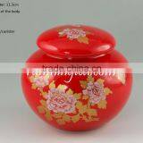Red Vivid Peony Painting Tea Canister/caddy/coffee Canister