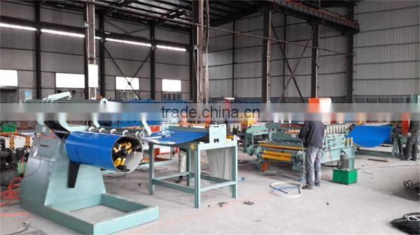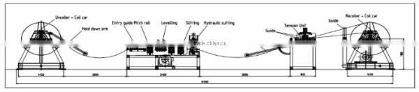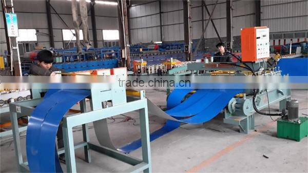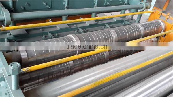 2) Entry guide pitch roll;leveling part (5+7 rollers);adjust slitting shaft and blades;hydraulic cutting by PLC control and