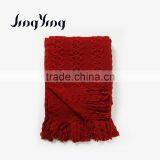 Cheap and Comfortable Acrylic Red Color Jacquard Crochet Blanket With Tassels