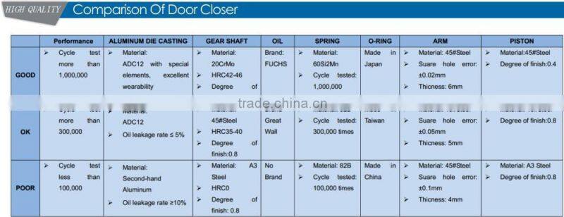 l Door closer comply to EN 1154 and GB standard,and fire-rated EN1634 standard.