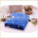New Pattern Blue and Yellow Moon and Star Print Flannel Fleece Blanket Made IN China