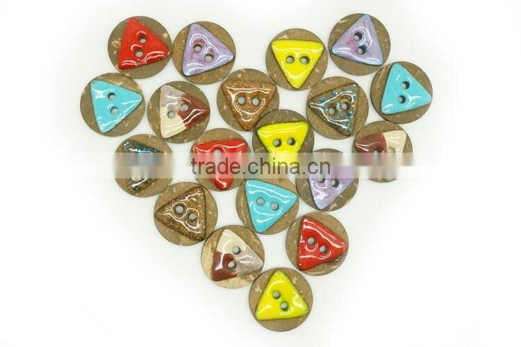 Fancy 2 Holes Colorful Red, Blue, Yellow, Coffee Triangle Oil Enameling Coconut Shell Button