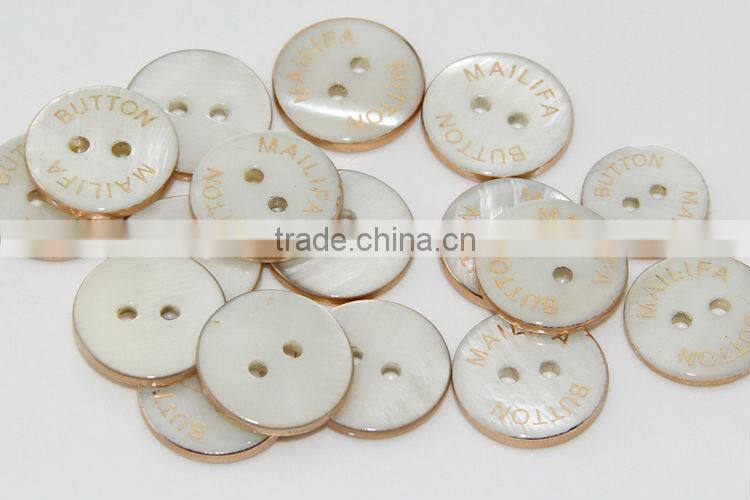 2 Holes Fancy High Quality Plate Gold Japanese Agoya Shell Button With Logo Engraved On