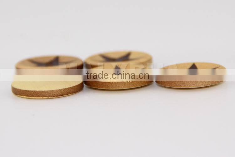 36L(23mm) Natural High Quality Brown Wood Button Painted Star Laser Engraving on