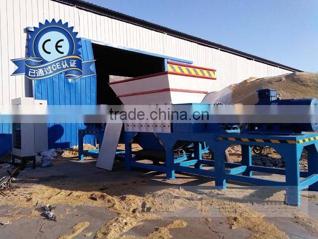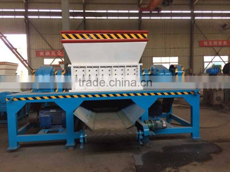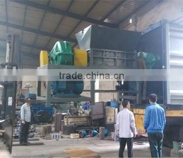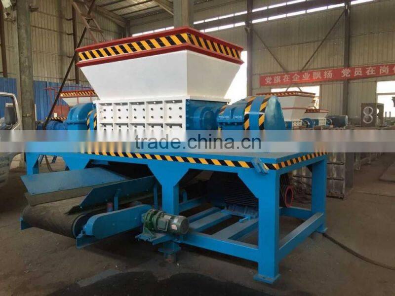 This machine is generally used to break materials that is difficult to tear like plastic, rubber , fiber, paper, wood, electrical parts, cables and other solid materials , such as: outlet material , plastic head , PET bottles , cardboard , board , wood, plastic barrels. The twin shaft shredder can process the materials to 20x40mm granular product.