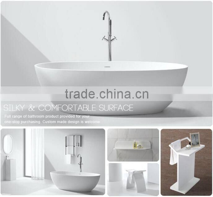 - Top Quality Artificial Stone 1.35m Small Size Freestanding Acrylic Solid Surface Stone Bathtub for Bathroom