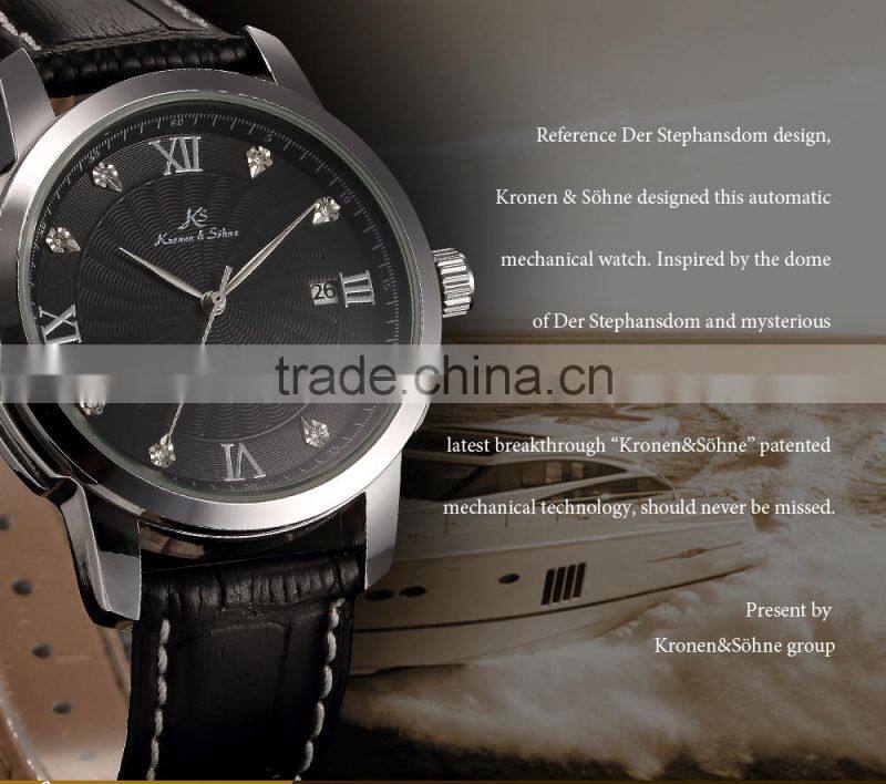 Kronen & Sohne Black Dial Analog Date Mechanical Leather Men's Watch
