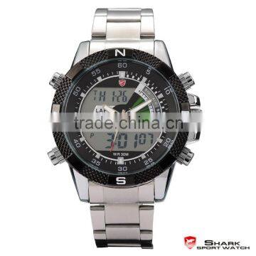 Mens Shark Digital LCD Outdoors Analog Quartz Sport Steel Wrist Watch