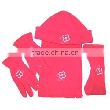 1.fleece glove, hat, head band and scarf with embroidery