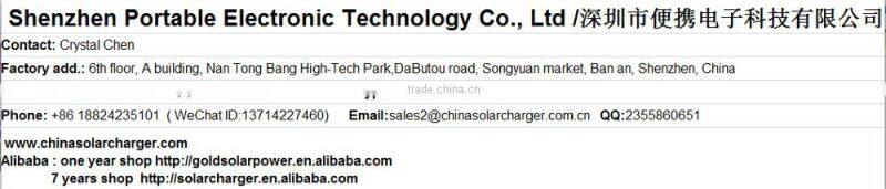 Photoelectric Green Energy(HK)Co.,ltd run in green energy products,our factory Shenzhen Portable Electronic Technology Co., Ltd. is mainly devoted to the research, development, manufacture and sale of solar products and power supply. Our solar mobile/laptop chargers, portable power,solar modules, solar infrared security lights,solar street light ,solar controller and solar home system etc supply have been successfully sold to clients in Europe, the USA, the Middle East, Asia, Australia and South Africa.