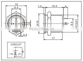 title:QN16-D6 16mm Dot Type Momentary Flat Head Pin terminal Waterproof metal push button switch