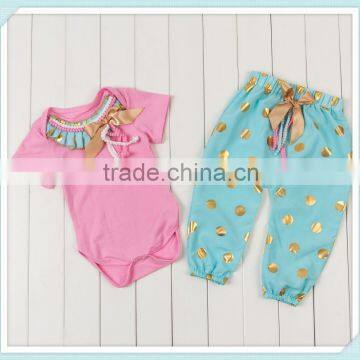 Super Cute Newborn Baby Girls Light Pink Short Sleeve Romper Matching Polka Dot Pants Summer Kids Cotton Pajamas Baby Romper Set