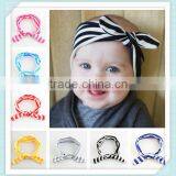 Latest Fancy Elastic Soft Stripe Cotton Bow Tie Custom Children Headband Rabbit Ears Bowknot Hair Tie Headband