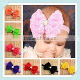 Newborn Baby Pearl Rhinestone Hollow Chiffon Flower Top Baby Headband 2015 Wholesale Children Photograph