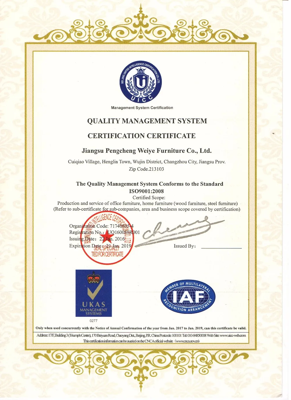 Jiangsu Pengcheng Weiye Furniture Co.,Ltd was established in 1997,located in East Gate Cuiqiao Industrial Development Zone Changzhou City, Jiangsu Province. It's a professional design, production,sales commercial office furniture enterprise.