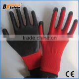 BSSAFETY Red Nylon Polyester Knitting Nitrile Glove Manufacturers