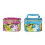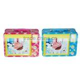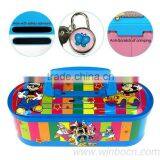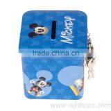 Square Cartoon Kids Gift Tin Coin Box With Lock Money Bank