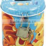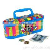 Handle Tin Cartoon Kids Coin Bank With Lock