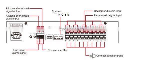 1. With the operation button,LED display;can manage 30 partitions,connected with ZMP-518 can be extended to 300 districts;