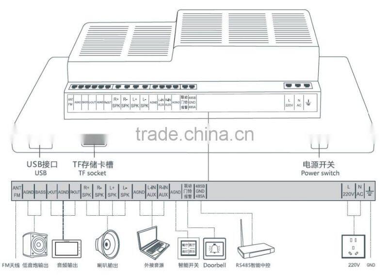 5. Built-in TI digital amplifier, bass signal output, interface with active subwoofer, Hifi sound.