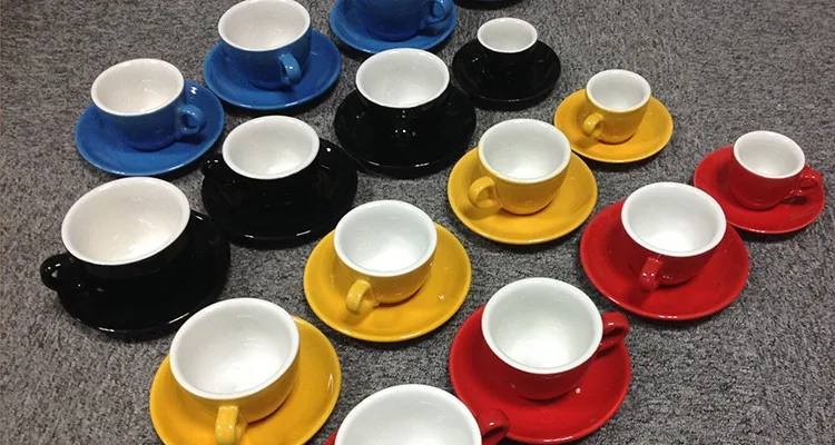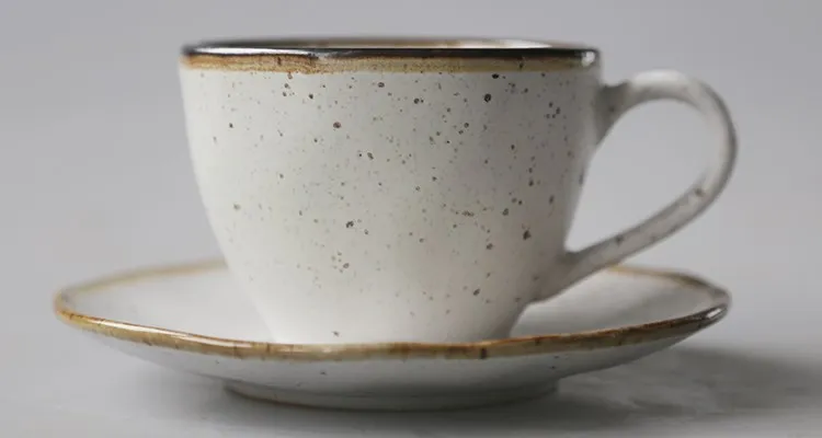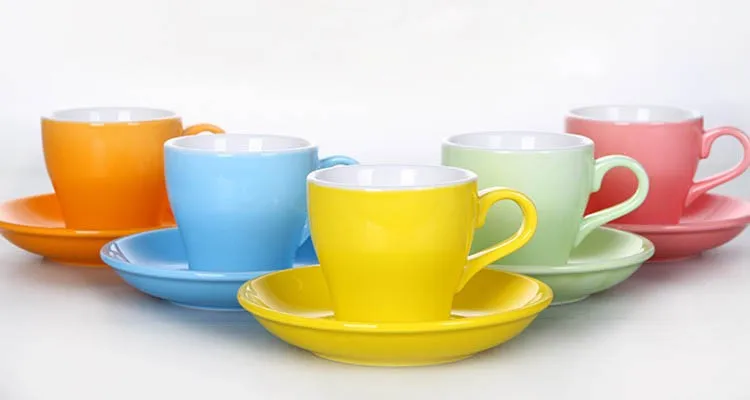 Color Glazed Coffee Tea Cups and Saucers Sets Stoneware Ceramic Porcelain Material