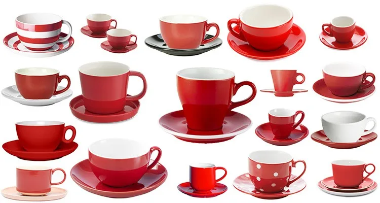 200cc Red Color Glazed Decal Logo Printable Customized Ceramics Coffee Cup Saucer