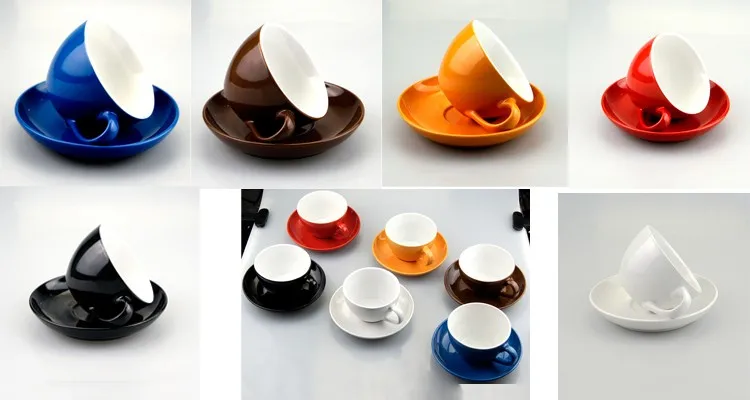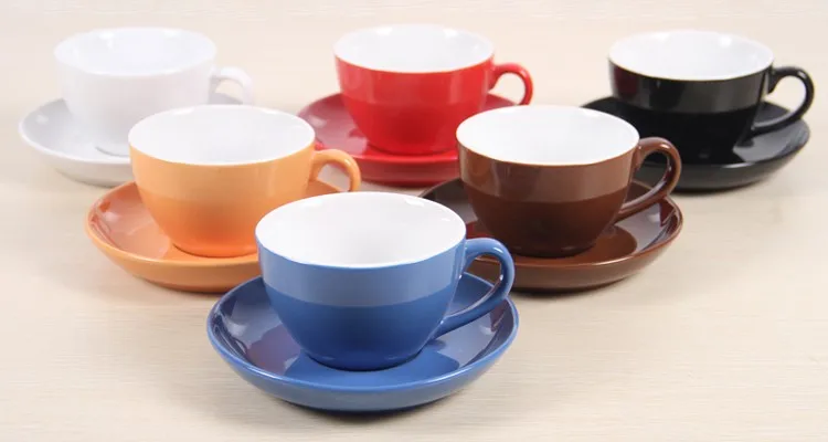 300ml Top Quality Color Glazed Ceramic Stoneware Coffee Tea Cups With Saucers Sets