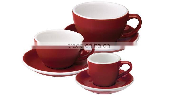 200cc Red Color Glazed Decal Logo Printable Customized Ceramics Coffee Cup Saucer