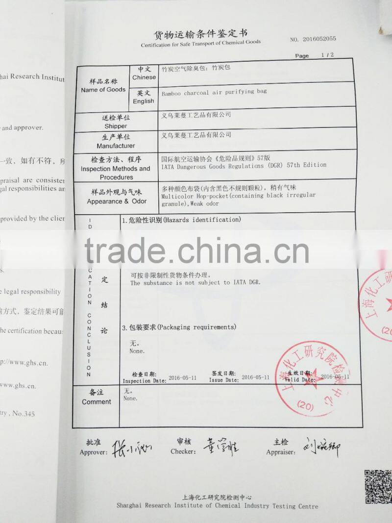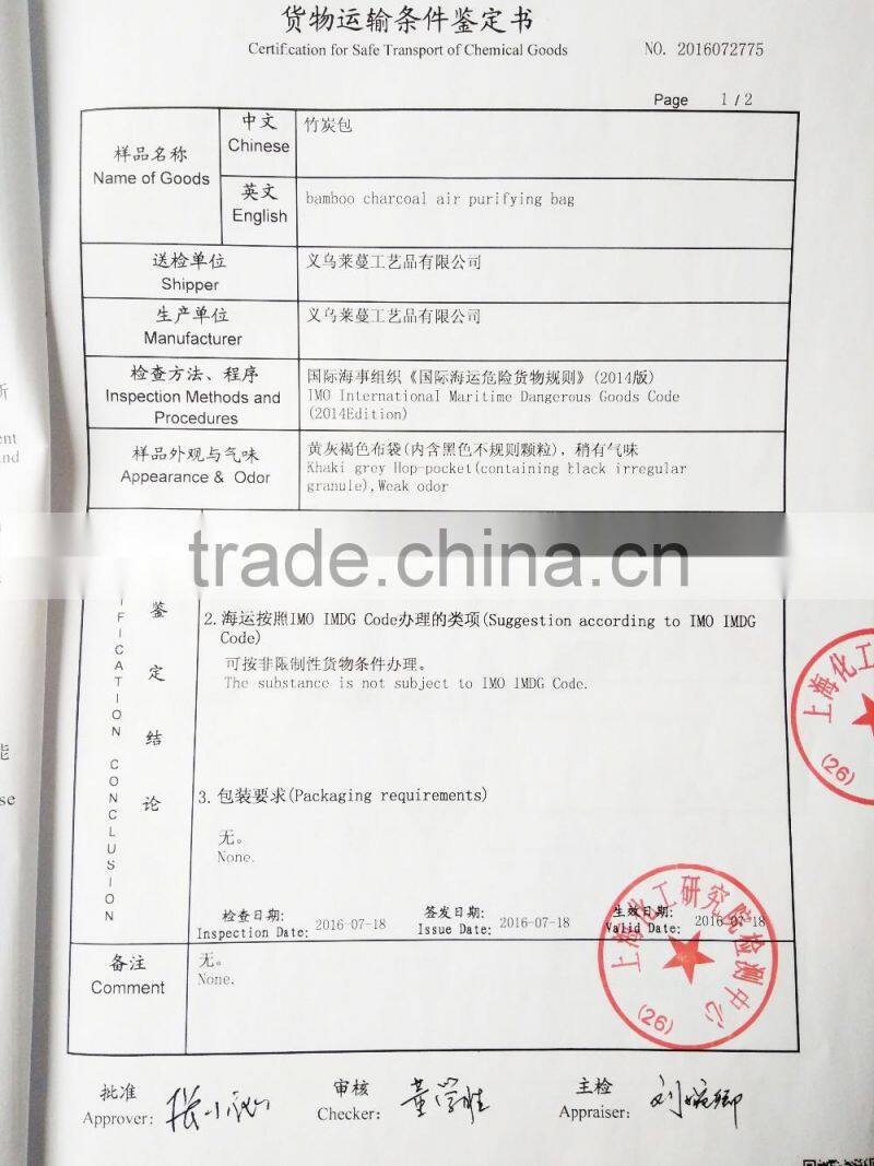 Yiwu Leman Artware Co.,Ltd has been a leading manufacturer and developer of health care handicraft and eco-products in China. We have more than 30 years experience in bamboo charcoal bags. We have been engaged in the research of house and auto purifier and decoration crafts. Our aim is to create healthier, safer, and fresher environment for people all over the world.