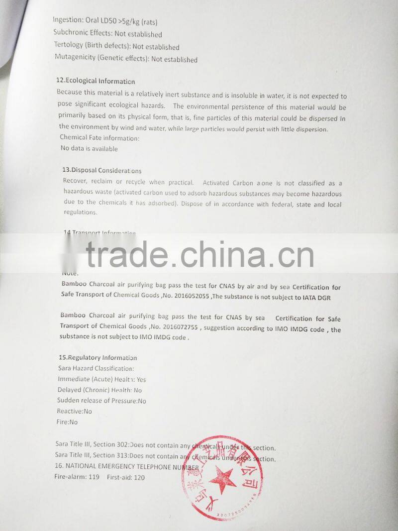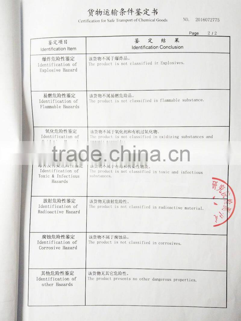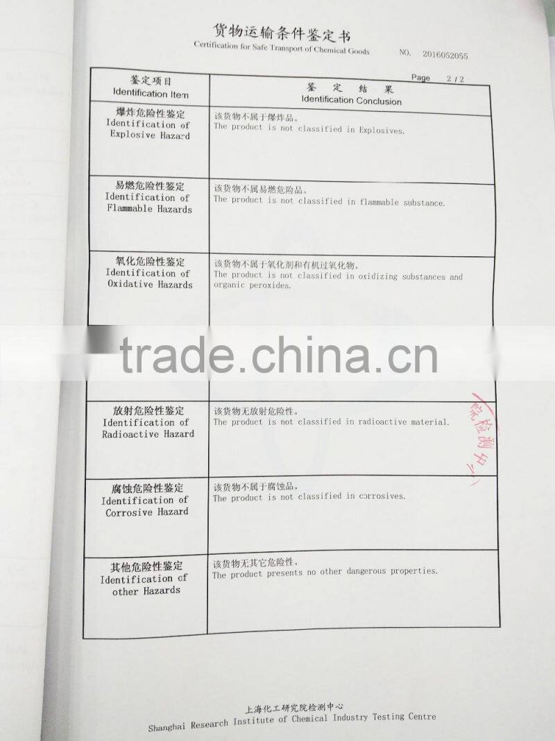 We are can offer our test report for CNAS by air ,CNAS by sea ,MSDS ,and our registed trade mark .