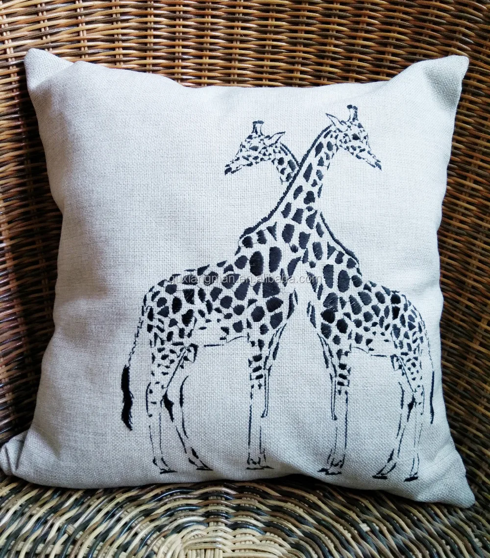 Nature Linen material Custom Decorative Pillows With Embroidery, Custom size Decorative Sofa cushion , Digital printing fast delivery Throw Pillow Covers